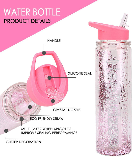 Kids Water Bottle With Straw,Girls Water Bottles For School,Tritan BPA Free Leak Proof,18oz Glitter Water Bottles For Women,Double Wall Insulated,Keep Beverages Hot or Cold,For Fitness,Sports,Pink