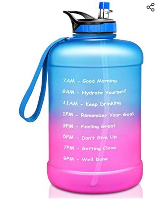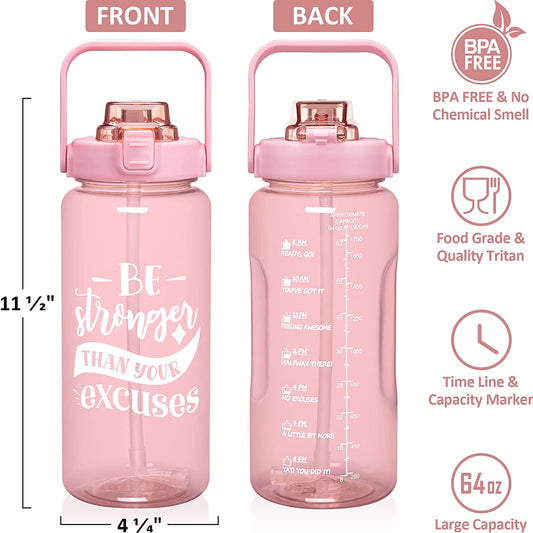 Divas Half Gallon Motivational Water Bottle with Sleeve & Strap 64 OZ with Straw & Time Marker to Drink. Leakproof BPA Free Workout Gym Sport Water Jug Women Men with Neoprene Holder