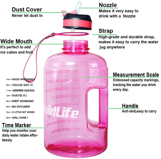 BuildLife Gallon Motivational Water Bottle Wide Mouth with Straw & Time Marked to Drink More Daily - BPA Free Reusable Gym Sports Outdoor