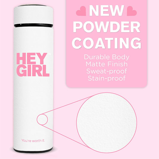 Hey Girl Tea Infuser Bottle - Insulated Stainless Steel Tea Thermos & Water Bottle (white only)