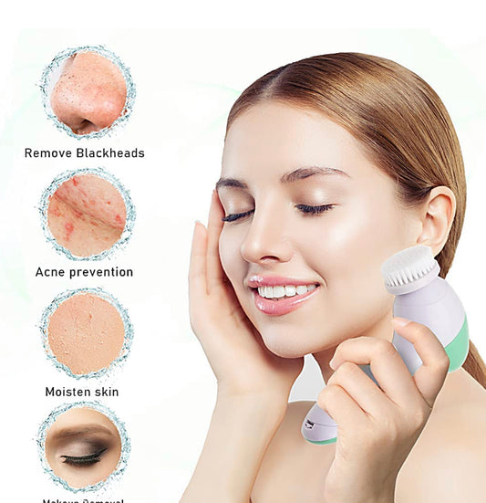 face scrubber ,Waterproof Facial Cleansing 5 in Brush + 1 Beauty care masserfor Deep Cleansing, Gentle Exfoliating, Removing Blackhead, face exfoliator skin care tools face Cleansing brush with travel