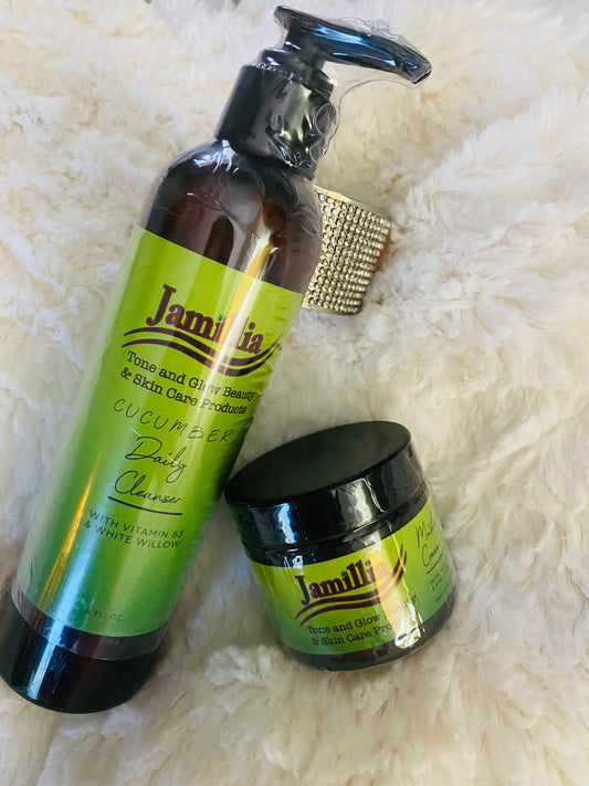 Jamillia's Tone And Glow Moisturizing Cream and Cucumber Daily Cleanser Set.